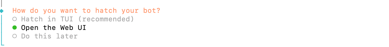 完成向导后,你的第一个个人 AI 助理就基本部署完成了。它会问你要不要打开一个 Web UI,选择它即可: