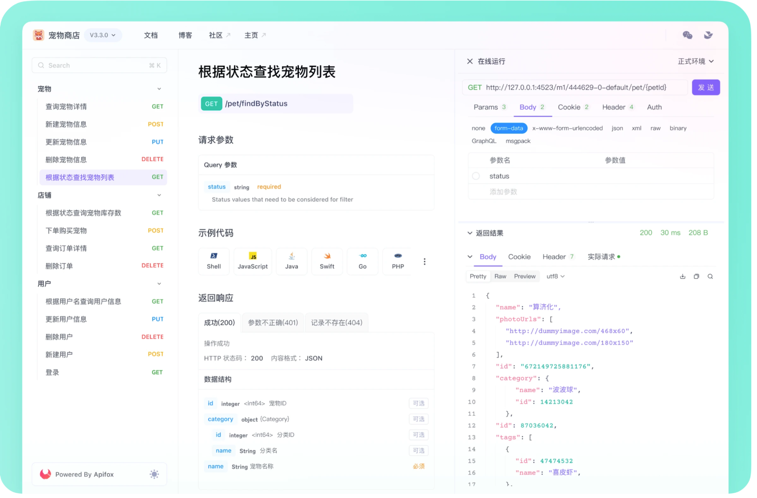 Apifox 提供了清洁、现代的文档界面,支持响应式设计,在各种设备上都能完美呈现。