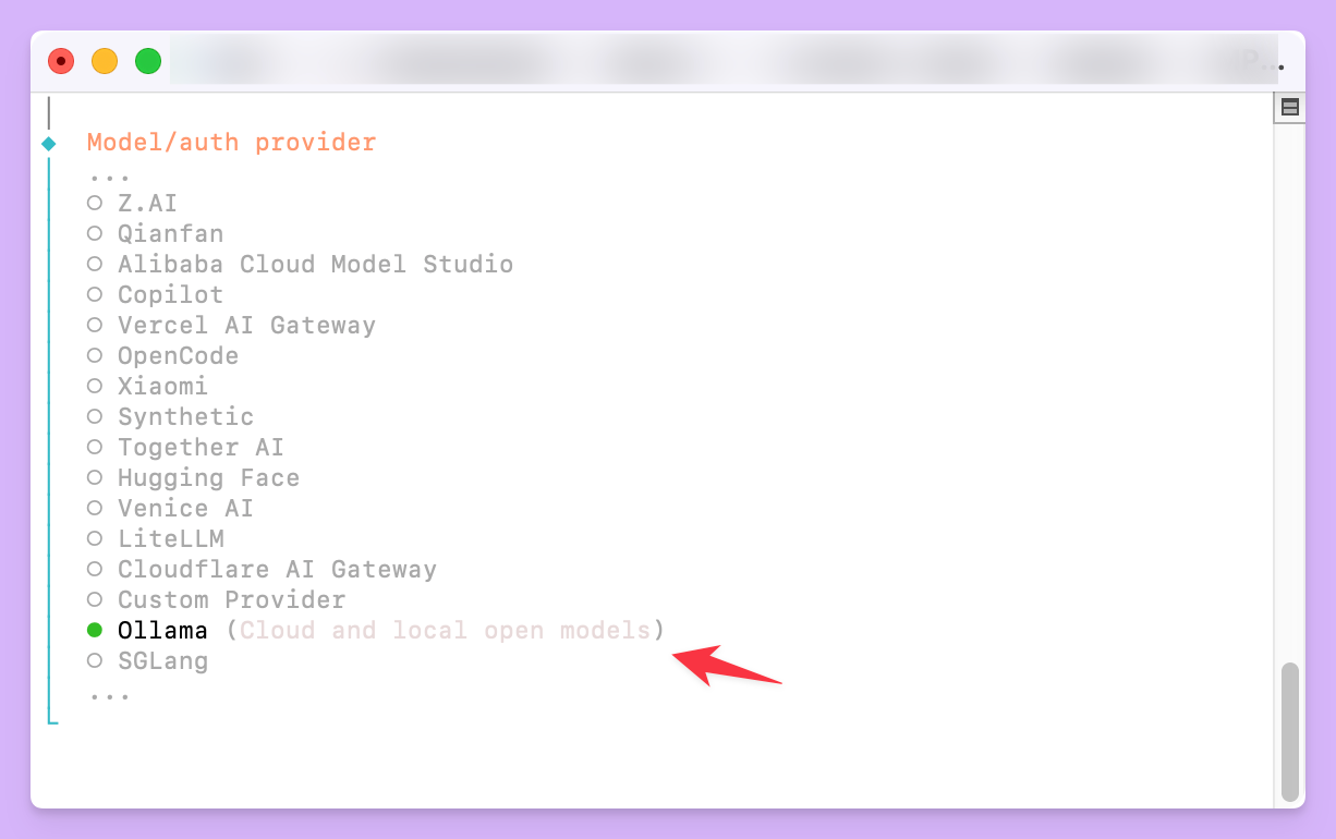 在向导的供应商选择列表中,找到并选择 Ollama。