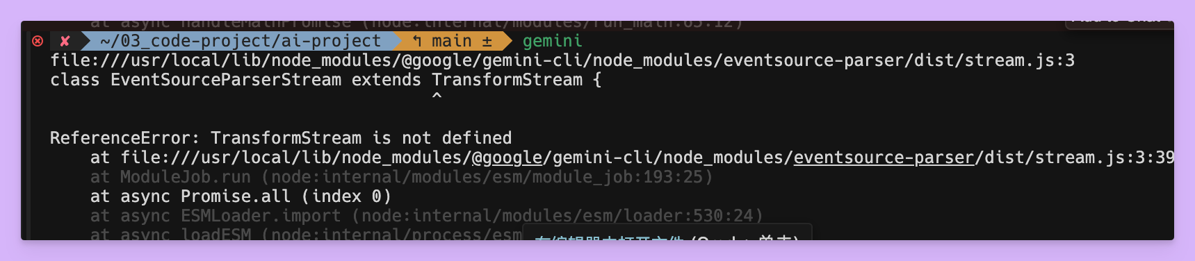 在使用 Gemini CLI、一些 AI SDK,或者较新的前端 / Node 工具时,你可能会突然遇到这样一段报错: