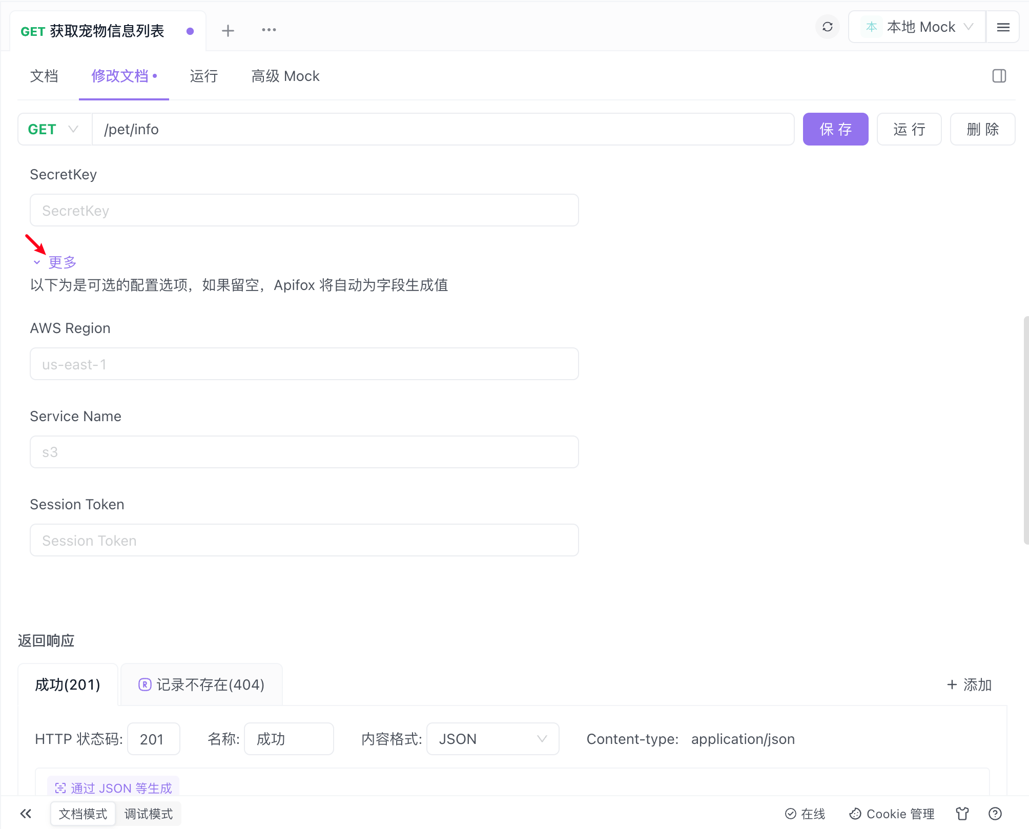 你可以点击“更多”选项添加更多签名参数。如果配置留空,它们会自动生成。